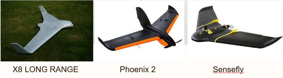 - Fixed Wing adalah drone yang menggunakan sayap untuk terbang, drone jenis Fixed Wing ini sendiri memiliki beberapa bentuk dan ukuran, bergantung pada kegunaannya masing masing.