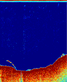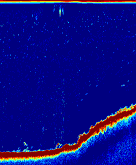 Sebuah bacaan di 50 kHz. Perhatikan bagaimana tempat dasar airnya kabur.