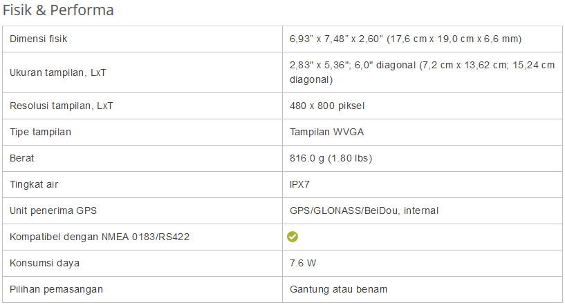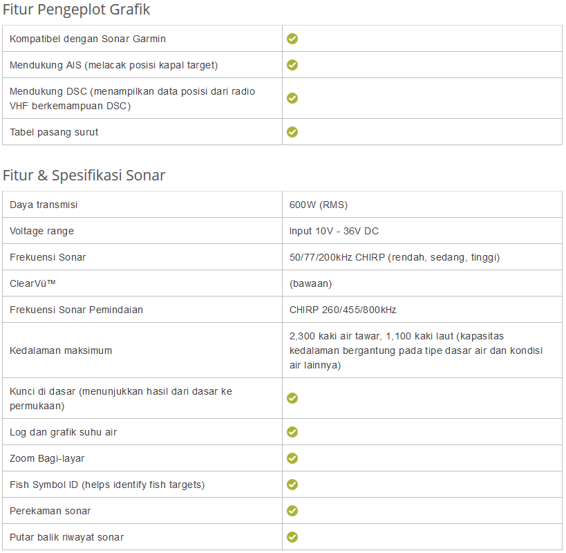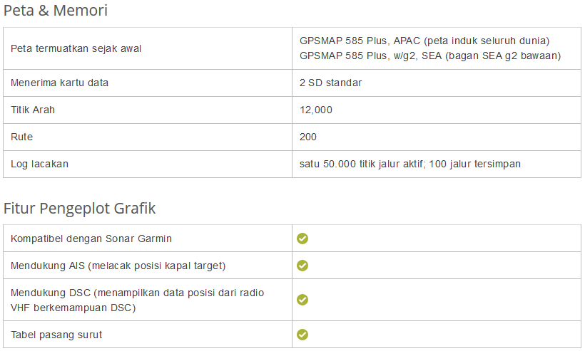 Spesifikasi Garmin Fish Finder 585 plus
