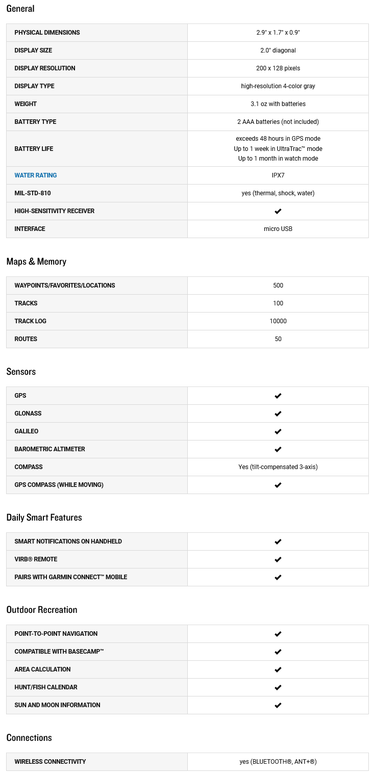 Nah kalo admin bicara spesifikasi lengkap dari foretrex 601 ini, mungkin kawan-kawan sekalian bisa cek table spesifikasi dibawah ini :