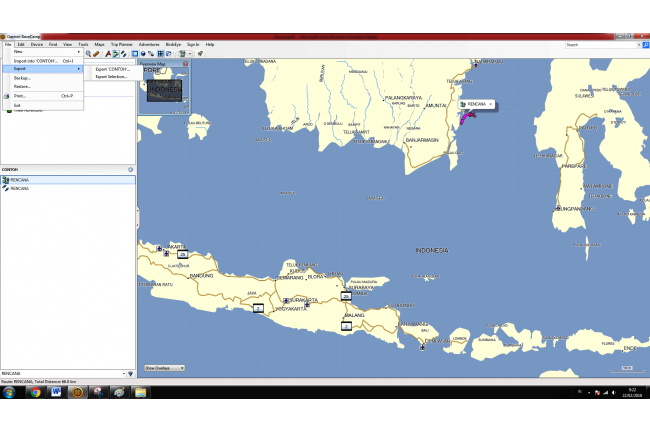 1. Buat file .gpx pada Software BaseCamp( kali ini yang kita buat adalah rute dan rute)