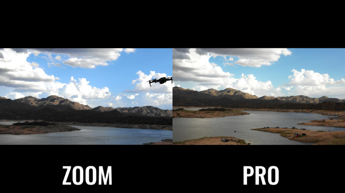 Perbedaan antara kedua drone ini ada di kamera. Zoom memiliki kamera yang sangat baik dengan kemampuan 2x optical zoom — setara 24mm hingga 48mm — dan Anda bisa mendorongnya hingga 96mm jika Anda memotret pada 1080p dan tidak perlu sedikit zoom digital. Ini adalah fitur keren yang akan berguna untuk memfilmkan objek yang sulit Anda capai, seperti hewan di alam bebas yang tidak bisa Anda dekati.