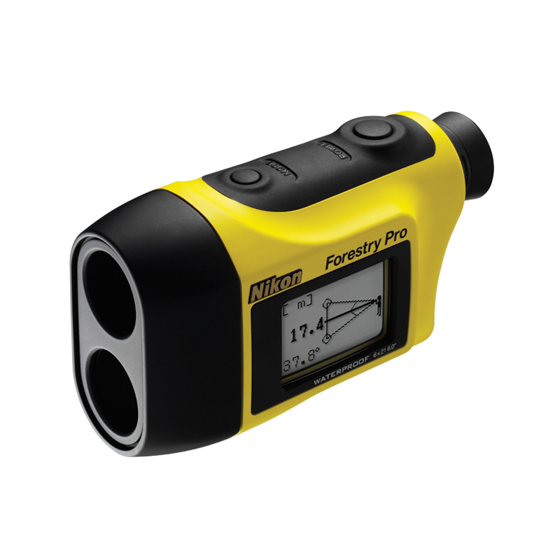 The Forestry Pro is the enhanced model of the Forestry 550 Laser Rangefinder. This widely used and praised forestry industry specific laser rangefinder is now equipped with three-point measurement capability to meet market demands. This newly added function enables a user to obtain the height of a tree even when the top or base of a tree is blocked by branches or bushes, preventing the use of conventional separation measurement where the laser beam is required to reach those points.