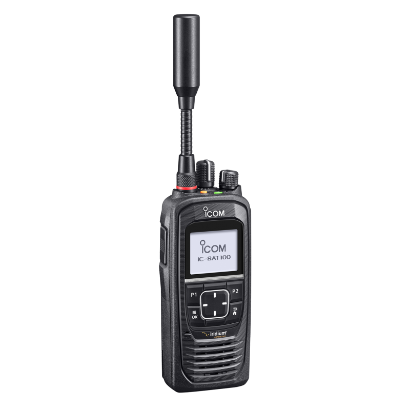 Unlike satellite phones, IC-SAT100 users can immediately start talking to all the radios in the same talkgroup, with just a push of the transmit (PTT) button.