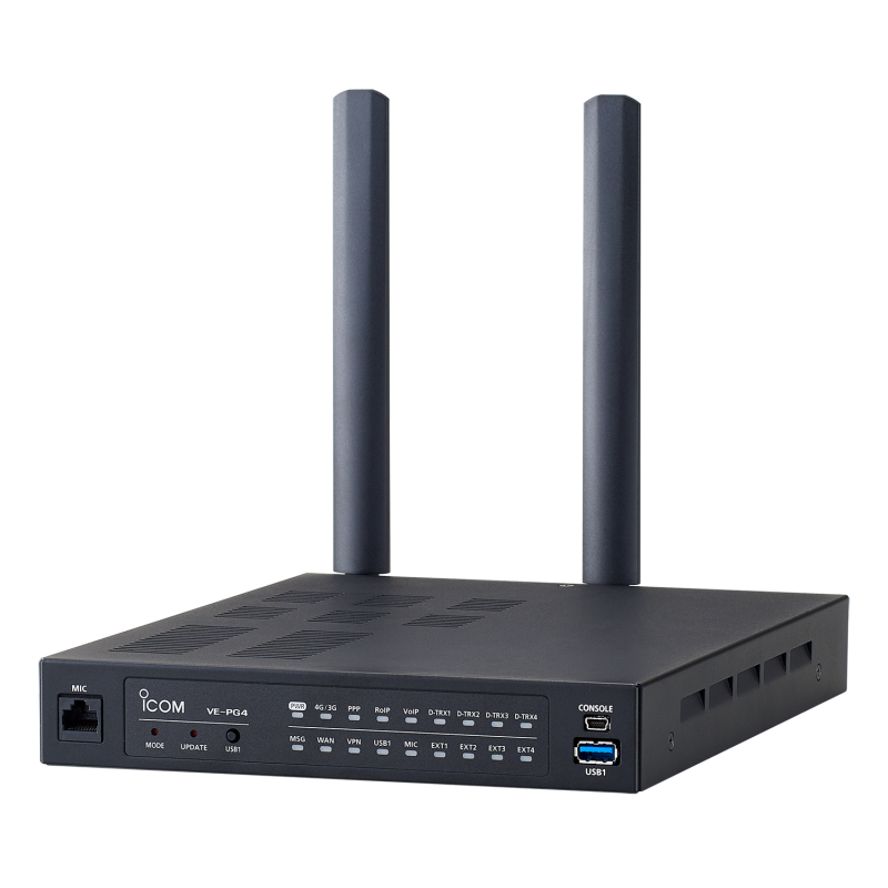 The VE-PG4 occupies only half the width of a 19-inch rack. It can be functionally installed with repeaters, switching hubs and other equipment. LTE (4G)/3G antenna bases with 1.5 m (4.9 ft) of cable are supplied in case antennas need to be relocated for better reception.